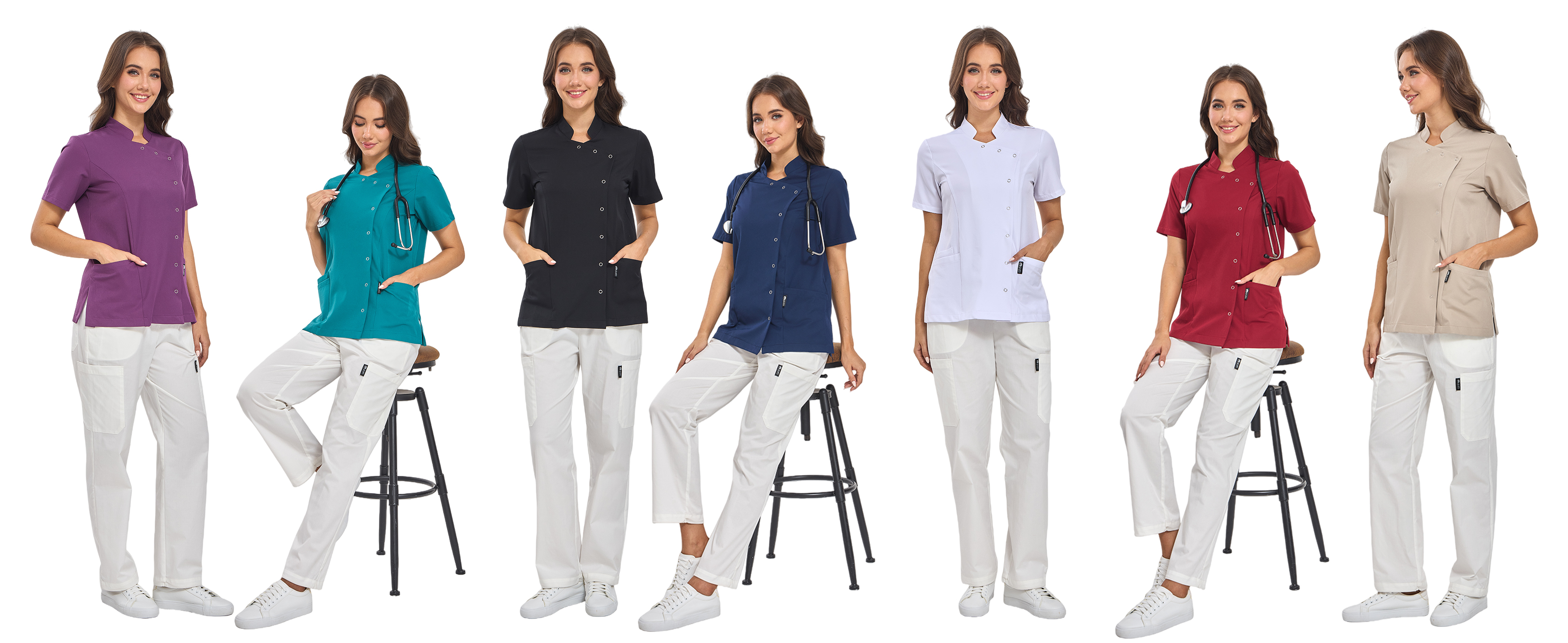 GUOER Medical Scrub Tops, Mandarin Collar White-AM2506