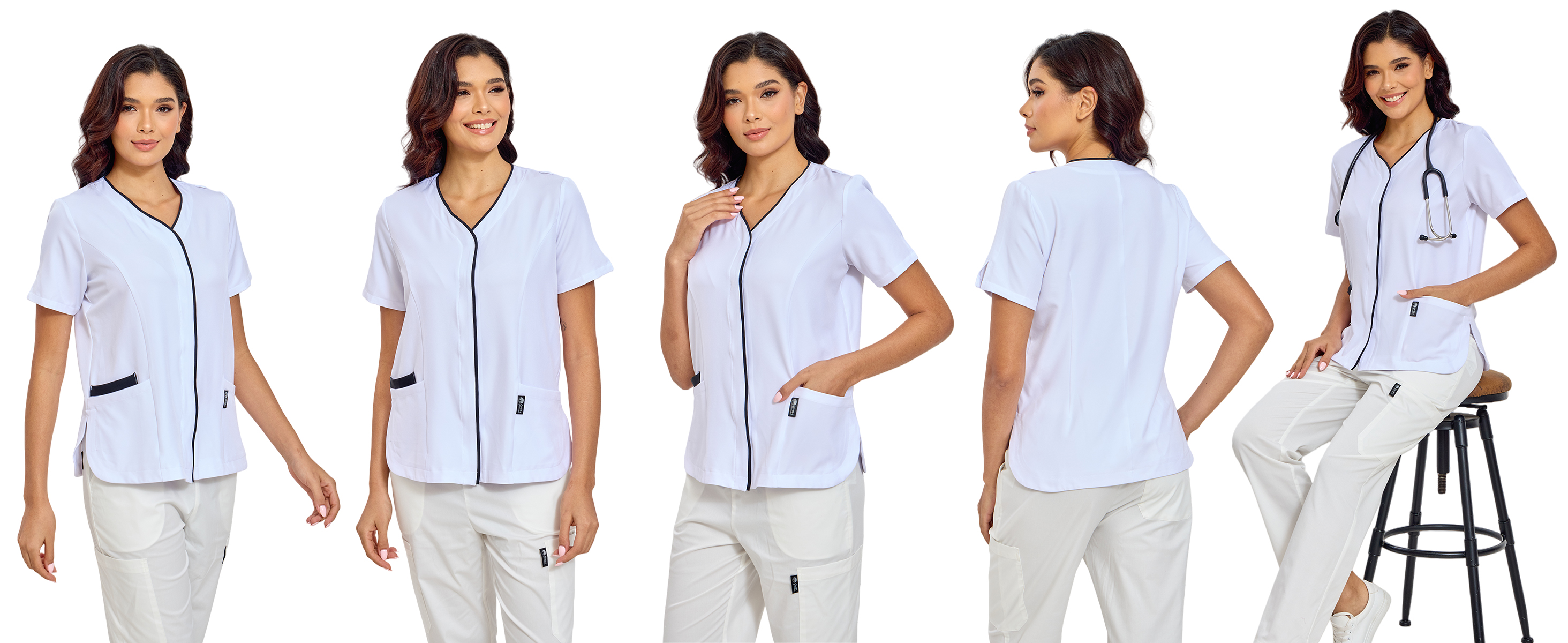 GUOER Scrub Tops for Women, V-Neck White-AM2502
