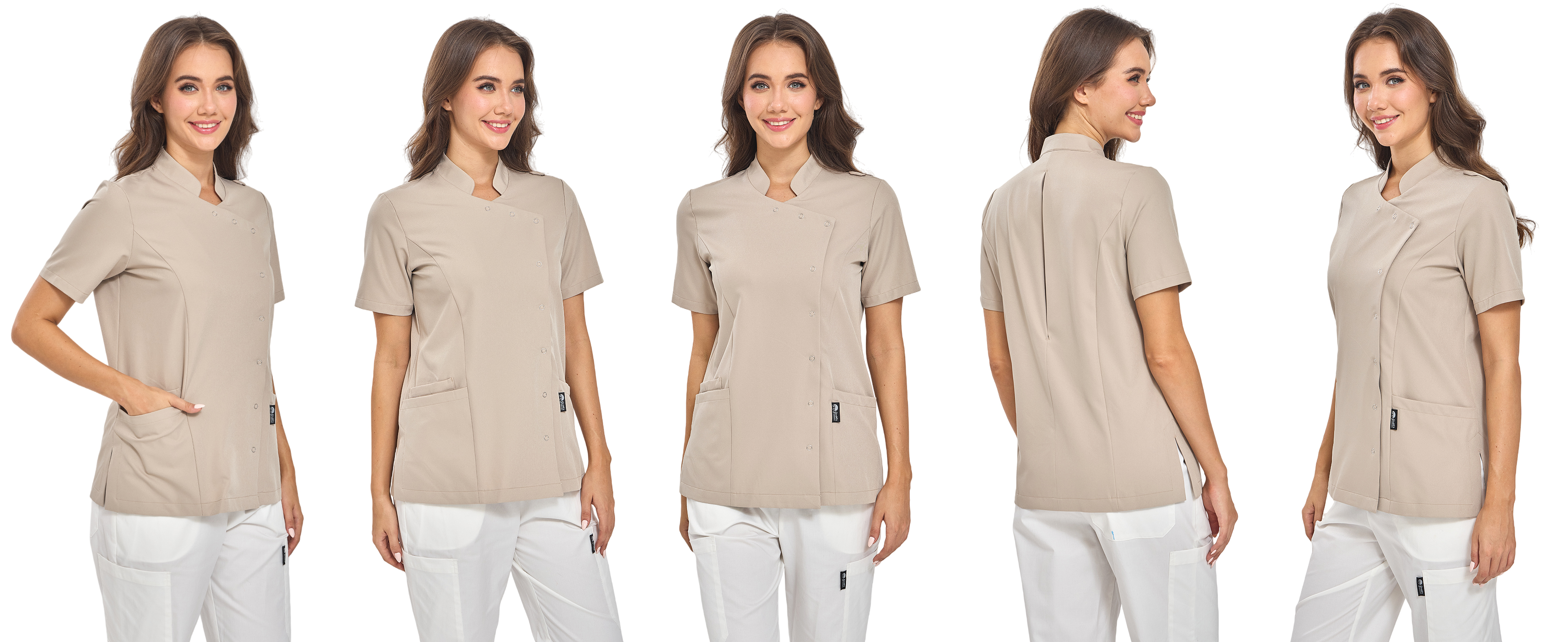 GUOER Scrub Tops for Women, V-Neck Khaki-AM2502